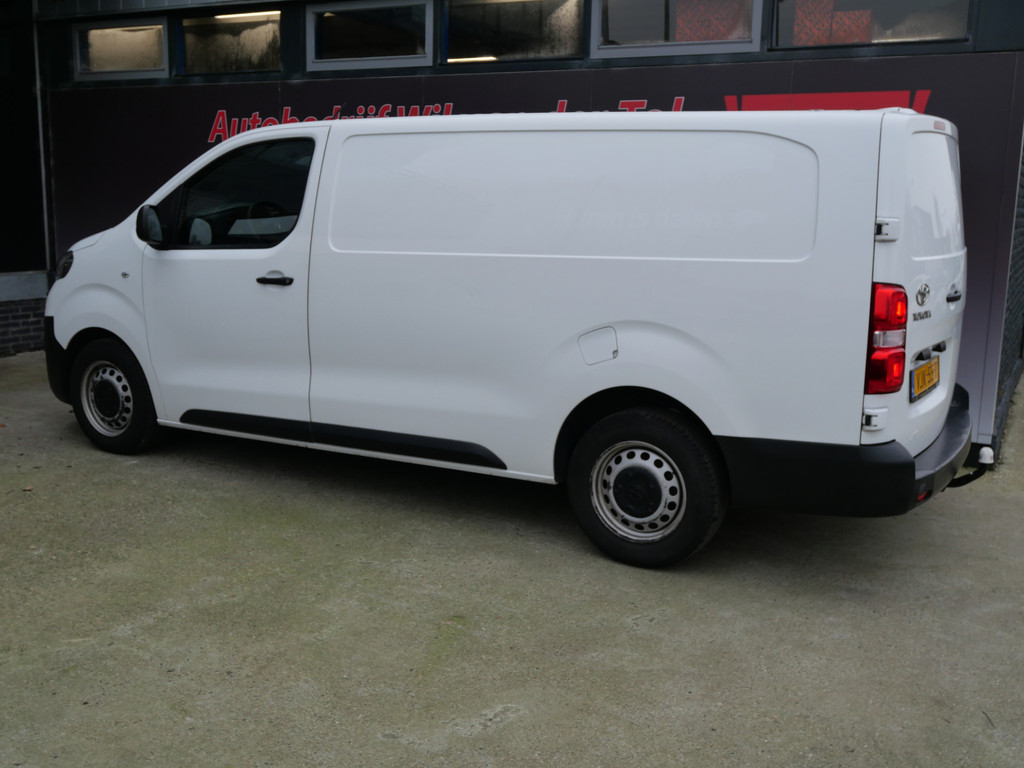 Deze verlengde Toyota Proace Long Worker is direct van de eerste eigenaar afkomstig. Voorzien van alle standaard gemakken als: Airconditioning / Cruise Control / Radio met USB en Bluetooth / Achterdeuren / 3-Zits Voorbank / Zijdeur / Trekhaak & Houten Vloer met Lat om Lat betimmering. Dit betreft een Euro 6 motor!! Prijzen zijn exclusief BTW.