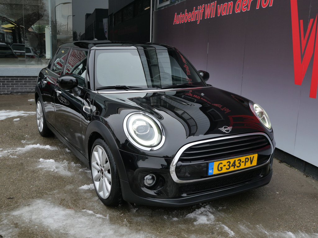 Origineel Nederlandse Mini Cooper 5-Deurs Automaat van december 2019 met veel opties als: Climate Control / Snelheidsbegrenzer / Apple Carplay / Cruise Control / Half-Lederen Bekleding / 17 inch Lichtmetalen Velgen / Parkeersensoren / LED Koplampen / Full-Map Navigatie Systeem / Armsteun / Zwarte Hemelbekleding / Privacy Glass & Automatische Verlichting.